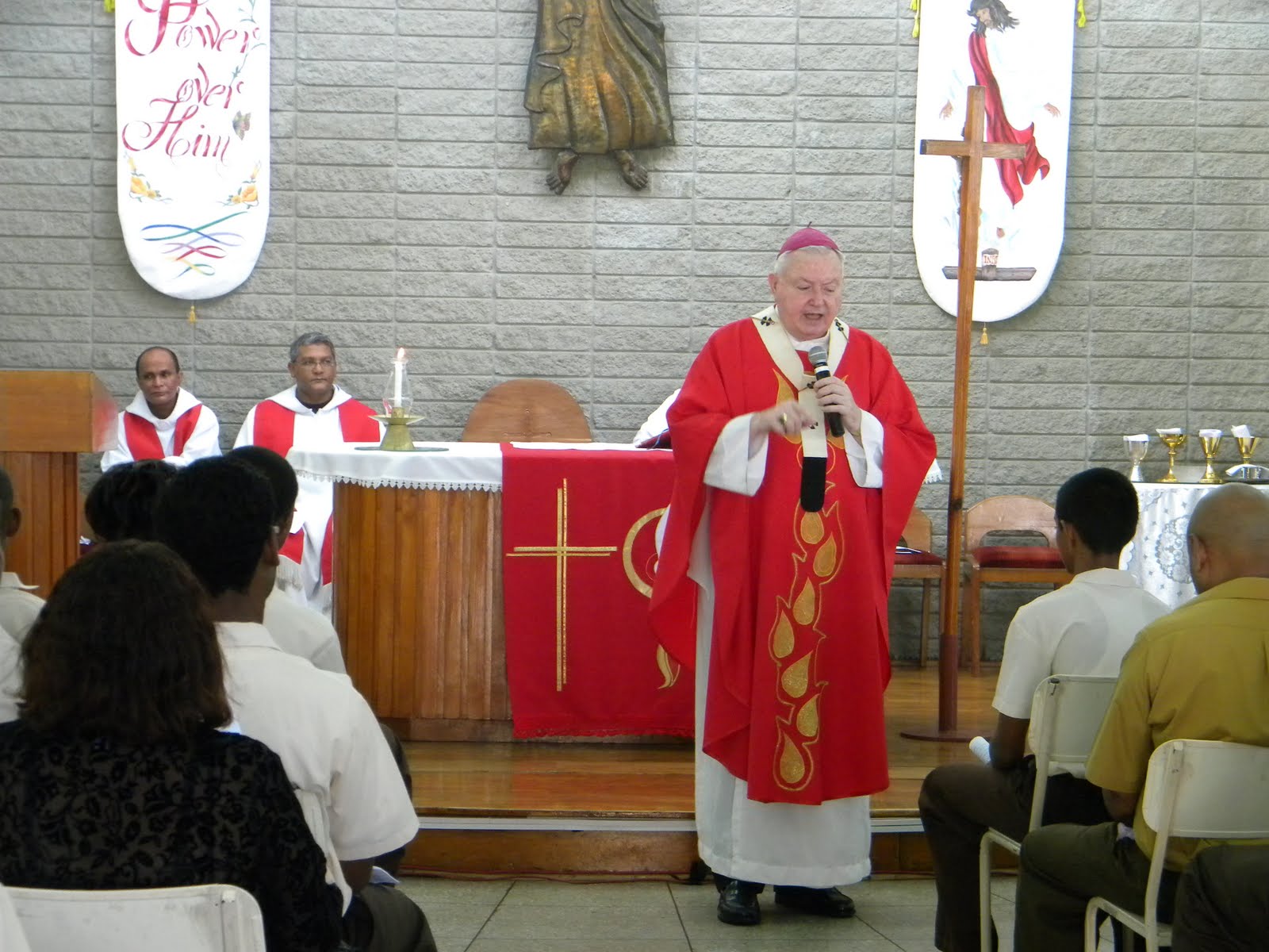 On the Thursday 9th June Holy Cross College recorded it's first. For the first time in the life of the college Holy Cross recorded its first conformation. At this monumental occasion Archbishop Edward Gilbert confer the the sacrament on forty six students of the young men college. These are some highlights from the occasion.
